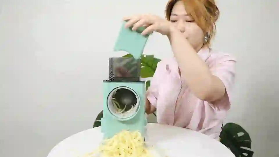 分别用来切丝、切细丝、切片。切换安装只需要把卷动部分拆卸下来换一下就行,但是还是要提醒友友们注意保护,不要在换刀片的时候划伤手。