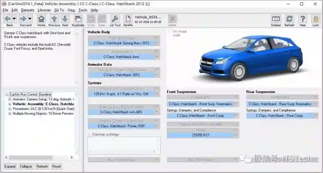 CarSim是Mechanical Simulation Corporation推出的一款整车仿真软件,主要从整车角度进行仿真。这个软件比较“傻瓜化”,其本质上是一个模型库+参数库+求解器+后处理工具+配置界面。也就是说,这个仿真软件自身已经自带了相当数量的模型,并且这些模型都有一些“比较靠谱”的参数,用户免去了繁杂建模和调参数的过程,只要将已有模型“拼”在一起,调整参数即可进行仿真。