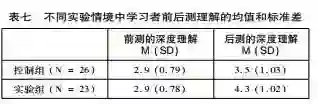 为了探究学习者对学习主题的深度理解程度,本研究对学习者前后测中深层理解数据进行了分析,均值和标准差如表七所示。