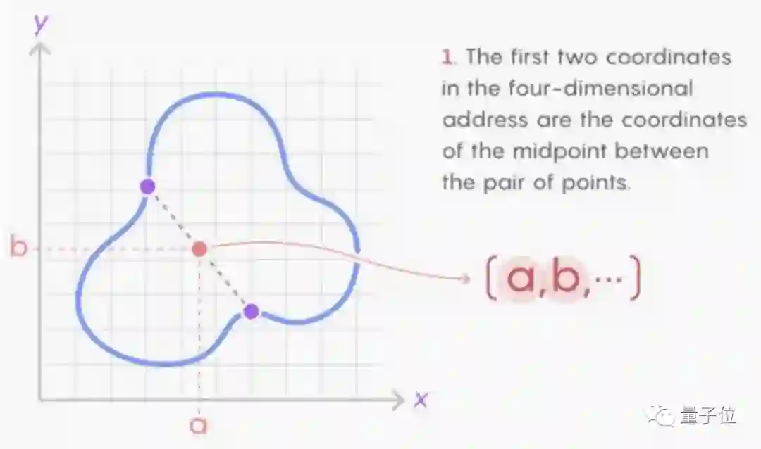 而通过这样一个函数:f(A, B) = (x, y, z),就相当于能把一对点的中点和距离信息编码出来。