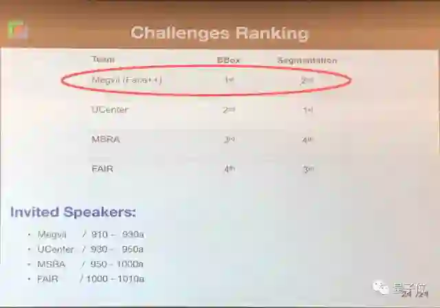 而在MS COCO物体分割检测中,由北京大学和香港中文大学联合组成的UCenter队(也可以理解为商汤科技队)夺得冠军,旷视科技(Face++)团队获得了第二名。