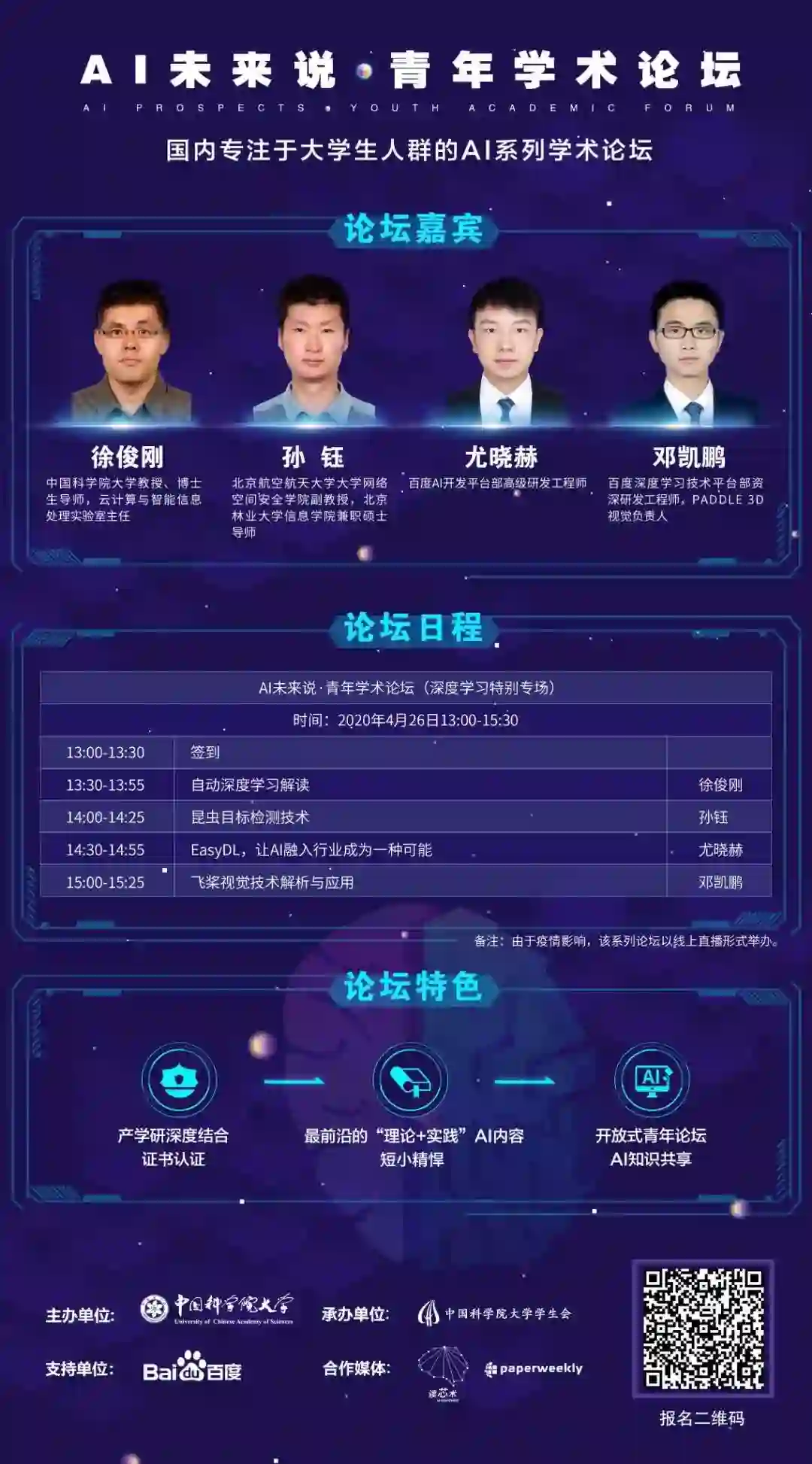 人工智能论坛如今浩如烟海,有硬货、有干货的讲座却百里挑一。“AI未来说”青年学术论坛第14期如约而至。来自国科大、北航、百度的各位专家和青年才俊,共同阐述深度学习领域的最新研究成果。一场专注于青年学者和大学生的AI论坛等你报名,可以快速定位文末报名哦~