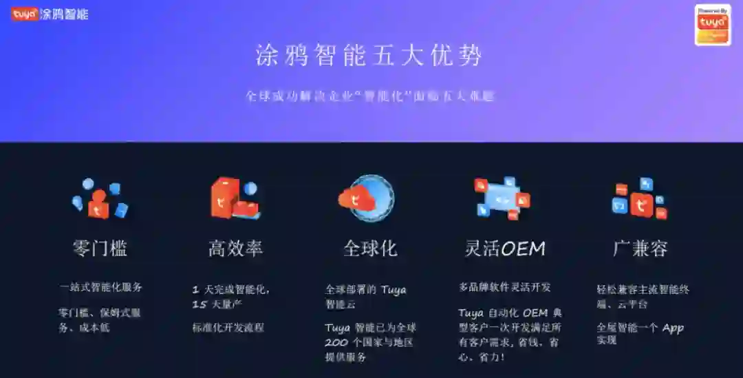 涂鸦是一个全球化智能平台,也是目前全球最大的语音AI交互平台,连接消费者、制造品牌、OEM厂商和零售连锁的智能化需求,为客户提供一站式人工智能物联网解决方案,并且涵盖了硬件接入、云服务以及APP软件开发三方面,形成人工智能+制造业的服务闭环。