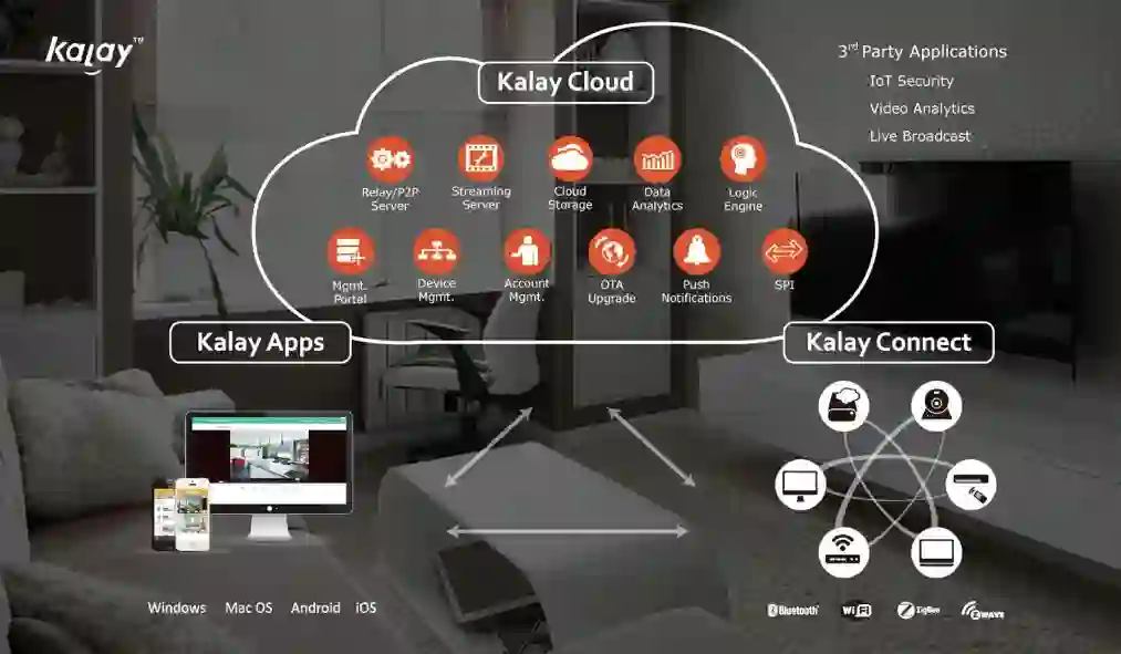 Kalay 是台湾兰屿雅美 (达悟) 族的语言,意为「牵手」;也象征着物联智慧的云端平台极具弹性,可跨操作系统快速串联各种智慧应用。Kalay平台让零售商、系统集成商、消费型产品制造商及服务提供商简易快速开发联网装置,并快速建立专属智能产品生态系统。由Kalay Connect、Kalay Cloud及Kalay Apps组合而成的Kalay平台,透过完成整合之逾百种SOC芯片,协助企业加快产品上市速度及开发物联网相关应用。