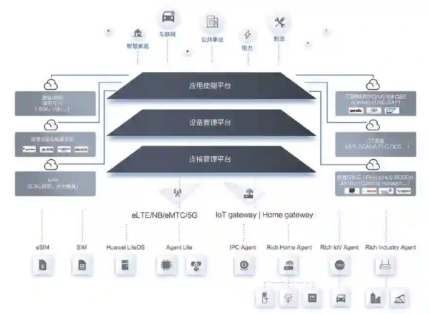 华为OceanConnect物联网平台是面向运营商和企业/行业领域的统一开放云平台,提供开放的三层架构,提供开放的连接管理平台,ICT融合的设备管理平台和灵活的应用使能平台。通过开放的APIs和独有的Agent,向上集成各种行业应用,向下接入各种传感器、终端和网关,帮助运营商和企业/行业客户实现多种行业终端的快速接入,多种行业应用的快速集成。华为OceanConnect物联网平台提供安全可控的全联接管理,使能行业革新,构建IoT生态。