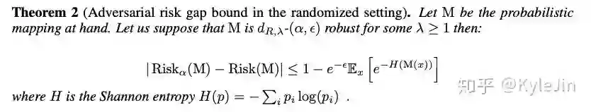 符号很复杂,不过表达的意思就是,如果加入较大的噪声让模型变鲁棒,那么H(M(x)),即模型输出的熵一定变大。当然,本文作者只探讨了“随机化”一种方式对robustness-generalization关系的影响。