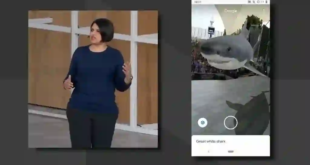 现场谷歌还直接将AR鲨鱼放到了舞台上。