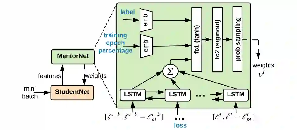 自动学习 data-driven 课程。MentorNet learns a data-driven curriculum to supervise the base deep CNN, naely StudentNet.