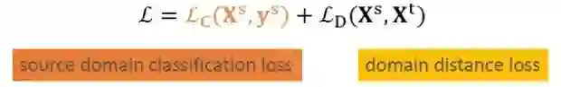 这类方法假设没有目标领域的标注。这里需要优化的是源领域的loss(有标注)和目标领域的差异(目标领域和源领域的差异),然后把源领域的模型直接用在目标领域。整体的优化目标如下: