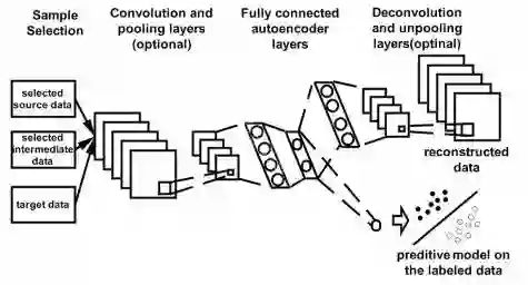 [Distant Domain TL, Ben Tan, et al., AAAI 2017] 这篇文章核心的idea就是通过reconstruction loss来选出好的source和intermediate data,然后把source, intermediate, target三个领域的数据合起来用一个shared的模型来拟合结果。这里的reconstruction是通过autoencoder来做的。Instance selection loss: