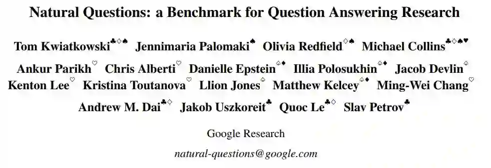 论文:Natural Questions: a Benchmark for Question Answering Research