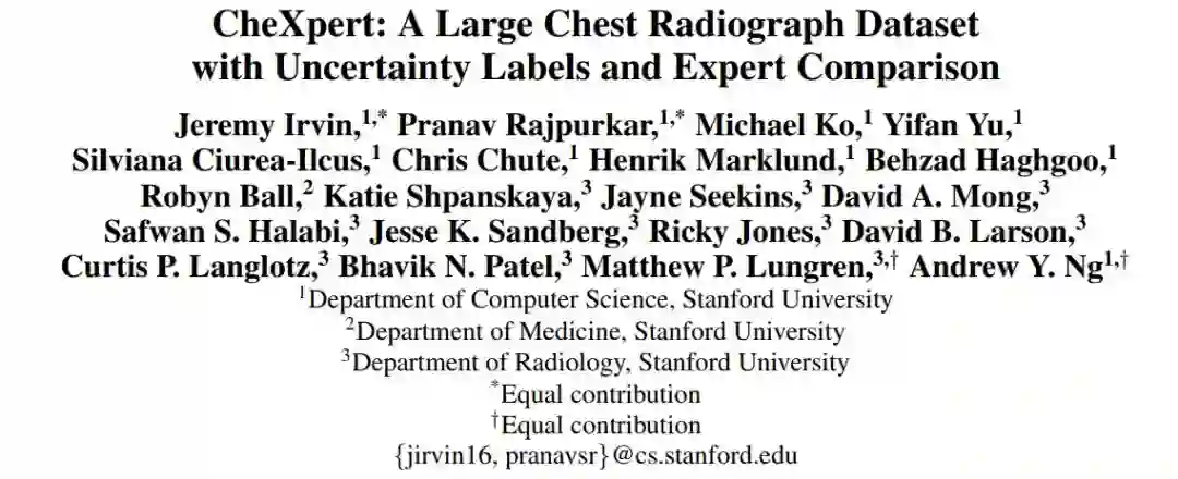 论文:CheXpert: A Large Chest Radiograph Dataset with Uncertainty Labels and Expert Comparison
