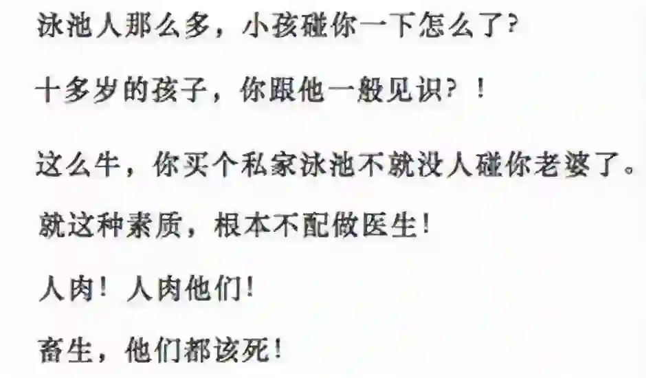 吃瓜群众不明事实真相,一看“水利局工作者公开殴打未成年人……”,不管三七二十一就开始泼脏水,“就这种素质,根本不配做医生?”“畜生,他们都该死!”