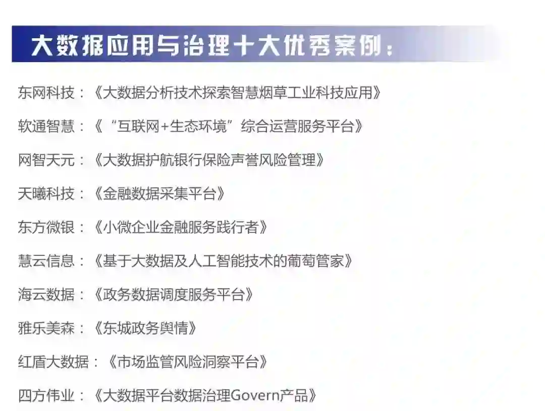 “大数据年度十大优秀案例”展演将于下午在主会场举行,展现大数据产业领先科技成果,发挥新技术、新模式、新应用的灯塔效应,彰显数字经济驱动经济释放新活力和新动力!