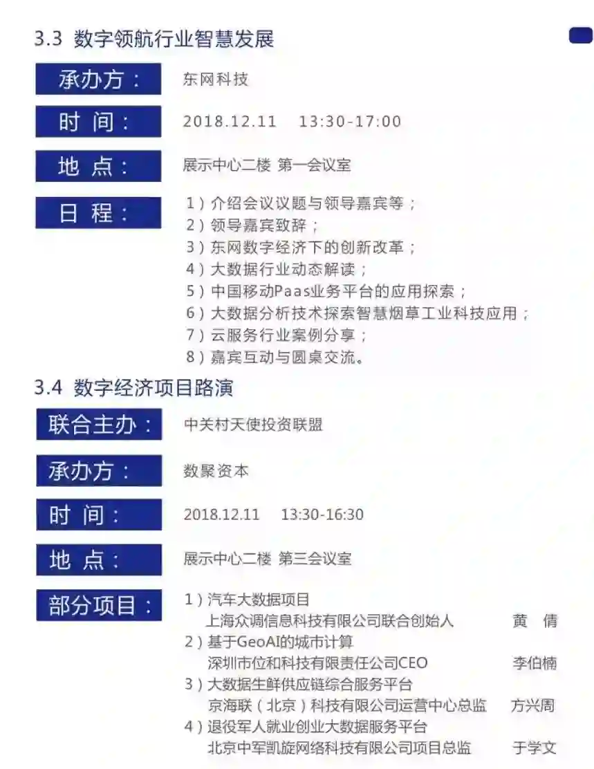 三大平行论坛将聚焦于技术应用、生态赋能、数字经济下的创新改革等话题展开深度对话;数字经济项目路演将邀请中关村大数据产业联盟智库专家、投资界、产业界资深人士、优秀创业者组成评委会,对路演项目的技术创新能力、商业模式、企业发展能力等做权威的判定。