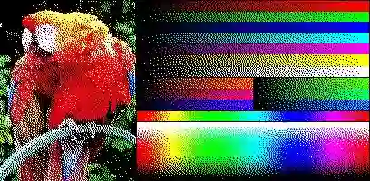 不过这里的一些图像只用了很少的颜色,因为它们使用了一个叫空间抖动的技术。这允许它们以很少的颜色仍然能表示出非常好的图像。许多早期的操作系统就使用了这种技术。