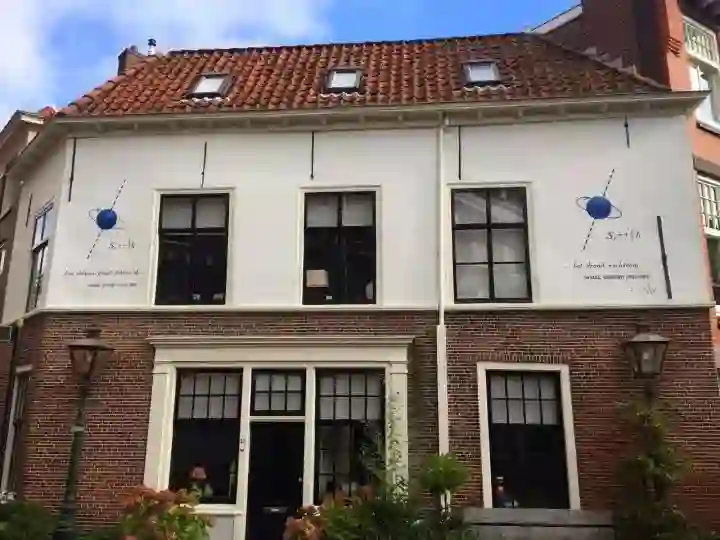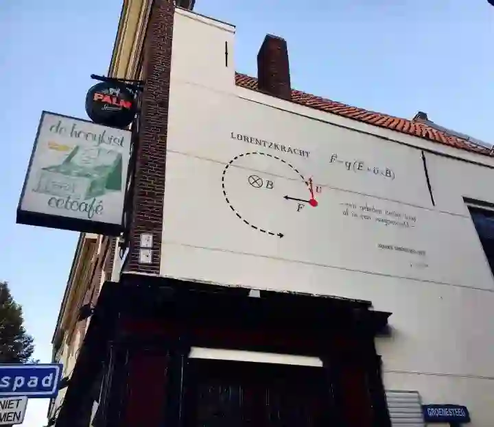 但是,莱顿拥有的不仅仅只是艺术,她还是一座以科学而闻名的小城。这里曾经居住着像洛伦兹、昂内斯、埃伦费斯特、塞曼和惠更斯这样的大科学家。所以,为何不在墙上绘制一些和科学相关的重要公式,为大众提供一些可以思考的精神食粮呢?