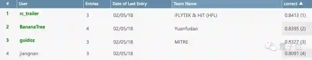 这个任务排名第一的是哈工大讯飞联合实验室团队。
