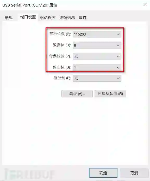 设置串口的波特率为115200