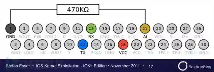 早期A4处理器的机器是能直接调内核的,而且30pin的数据线并没有对内核信息加密,因此我们能够直接读到内核数据。而现在的新机器一律采用加密过的light接口,使得非官方的内核调试基本上消失了。 网上也有不少大佬写过类似的教程,但年代久远,自己动手时还是遇到不少问题。