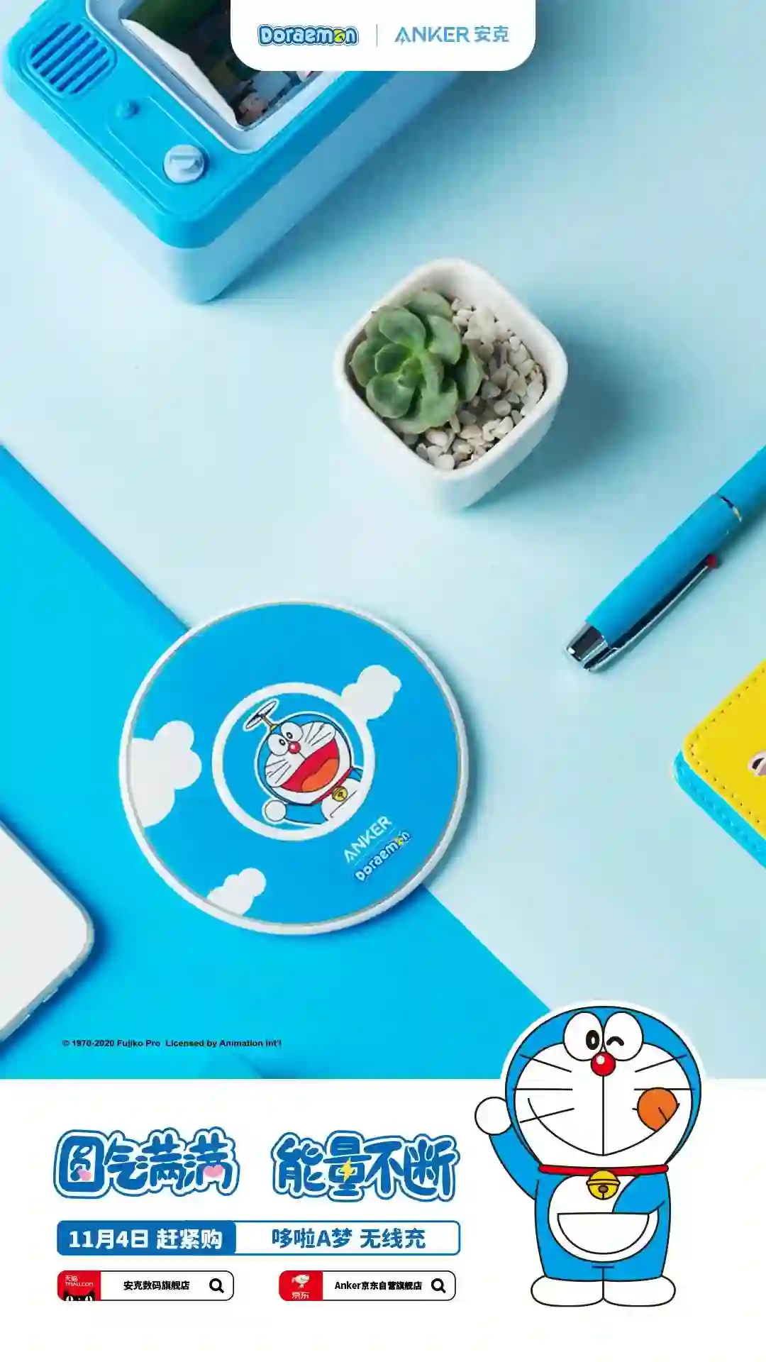 Anker安克哆啦A梦系列现已登陆京东、天猫双平台的官方旗舰店,11月4日-10日预售加购,11月11日支付尾款。大促有优惠,数量也有限,喜欢的不要错过了。