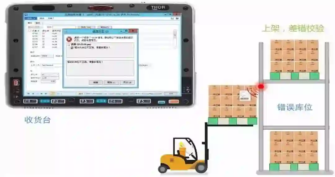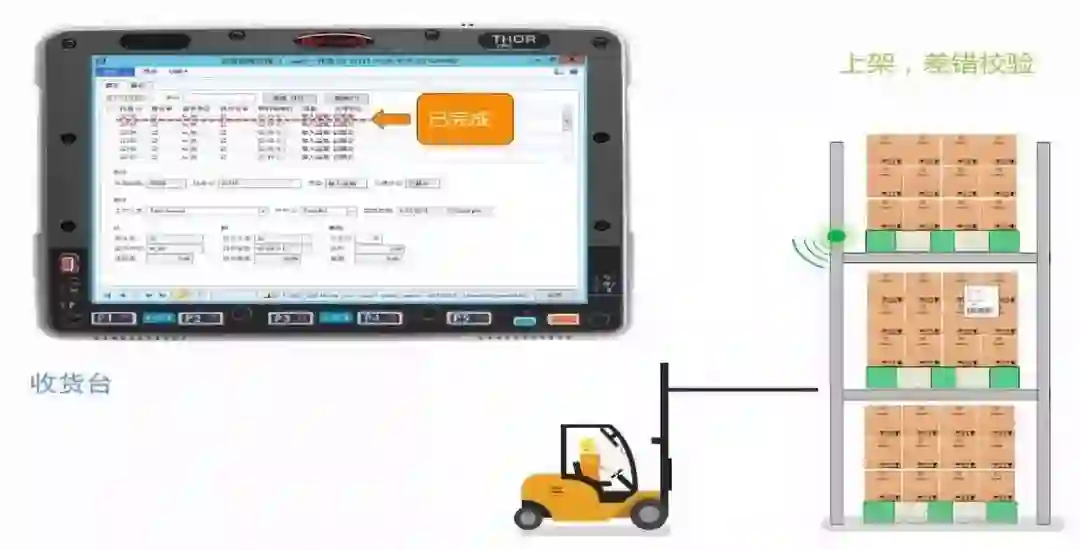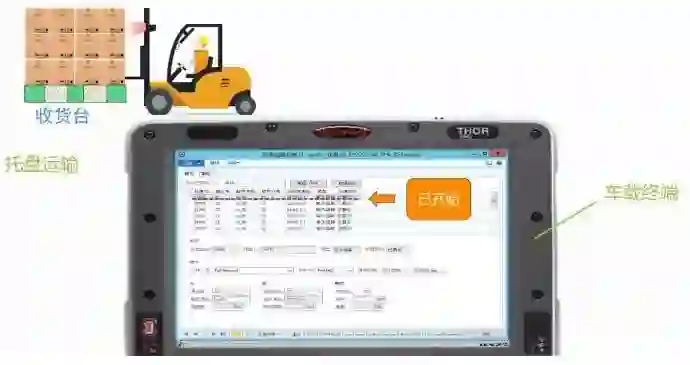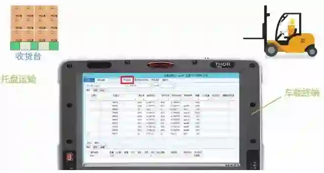 第四步:叉车司机根据车载终端提示进行搬运,完成后自动收集物流信息