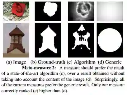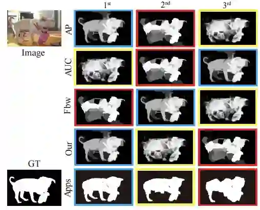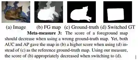 前景图的度量对于物体分割算法的发展有着重要的作用,特别是在物体检测领域,其目的是在场景中精确地检测和分割出物体。但是,当前广泛应用的评估指标 (AP, AUC) 都是基于像素级别的误差度量,缺少结构相似性度量,从而导致评估不准确(优秀算法排名比拙劣算法靠后)进而影响了领域的发展。