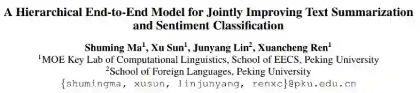 论文:A Hierarchical End-to-End Model for Jointly Improving Text Summarization and Sentiment Classification