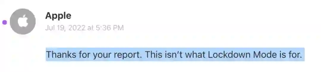 ,但对此苹果的回答仅是:「这并不是『Lockdown Mode』被设计用来要做的事」。