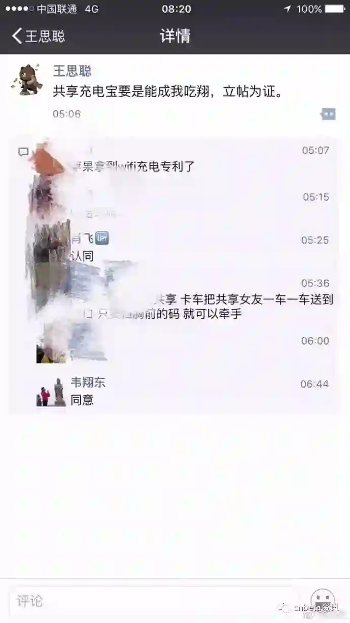 共享经济成了当下的热门话题,其中的代表就是单车,此外,充电宝、汽车等服务形式也开始如雨后春笋般兴起。然而,有网友爆料称,万达公子、普思资本董事长王思聪今晨5点在朋友圈激烈陈词,“共享充电宝要是能成我吃翔,立帖为证”。随后,聚美创始人陈欧转发并在微博表示: