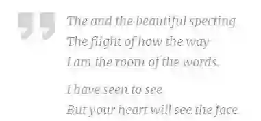 它也开始写出一些十分有诗意的短语。这些短语有些类似于之前的模型偶尔产生的绝佳的诗句,但是他们有些时候跨越了不止一行。例如:
