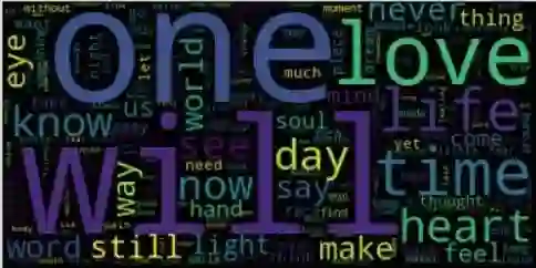 尽管单一的 LSTM 模型在一首诗中并没有完全掌握主题,但它在整个作品的创作过程中似乎都有一个共同的主线。下面是一个从所有单层 LSTM 模型生成的诗词中产生的词云: