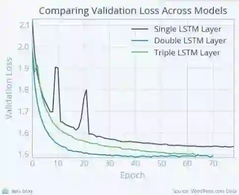 这里有一个图,比较了随着LSTM层数增加而变化的模型的损失函数曲线。