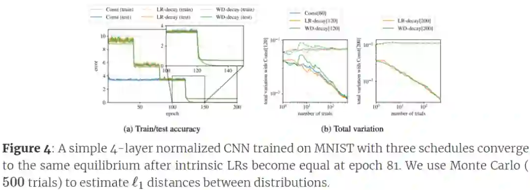 论文《An Exponential Learning Rate Schedule for Deep Learning》通过对归一化网络的 SGD 提供新的 SDE 风格分析来深入了解内在 LR λ_e 的作用,得出以下结论(部分取决于实验):