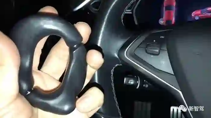 这款磁性吸附设备可以固定在特斯拉电动车的方向盘上,用户开启 Autopilot 后,它就会像手一样“扶住”方向盘,让安全系统错误的认为这是驾驶员在操控。