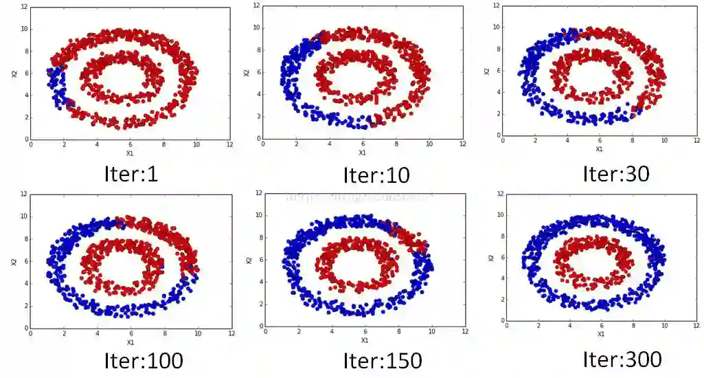 该注释的,代码都注释的,有看不明白的,欢迎交流。不同迭代次数时候的结果如下: