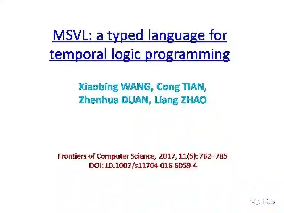 MSVL 是一种时序逻辑程序设计语言,是投影时序逻辑(PTL)的可执行子集。MSVL 将系统的建模、仿真和验证三大功能集合于一体,是形式化验证的有力工具。在时序逻辑编程中,类型的开发是一个重要但具有挑战性的问题。本文研究了如何在 MSVL 中将类型形式化并进行实施。