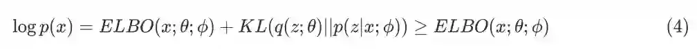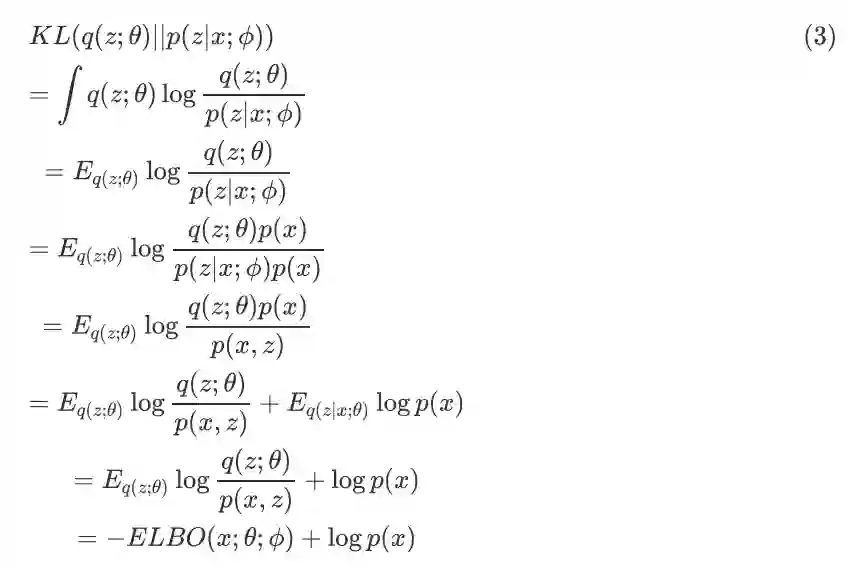 因为真实后验分布是未知的,直接优化公式(2)是一件比较有挑战的事情,VI 巧妙地将其转化为优化 ELBO 的问题。推导过程如下: