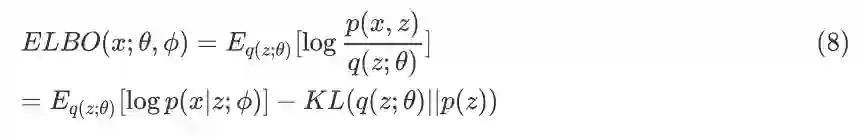 公式(6)和公式(7)是一致的,所以求变分后验分布与真实后验分布 KL Divergence 的最小化等价于求 ELBO 的最大化,而 ELBO 的具体形式如(6)(7)所示,进一步整理可得:
