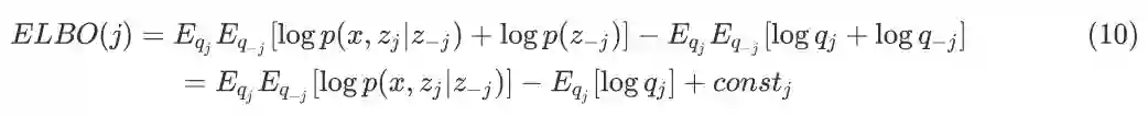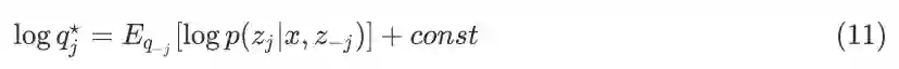 公式(10)可以看作是一个负 KL Divergence 项,为使得 ELBO(j) 最大,所以负 KL Divergence 为 0, 可得到: