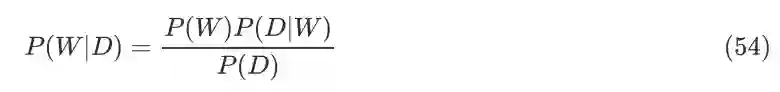 这里 P(W|D) 是后验分布,P(D|W) 是似然函数,P(D) 是边缘似然。