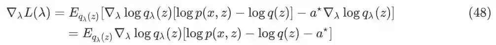 当找到合适的 f(z) 使得公式(19)右边的一项为 0,只需要计算前面的一项。近几年有一些工作将此方法应用到了 VI 中,其中具有代表性的是 Stein Variational Gradient Descent 和 Operator VI,前者用了 kernel 的方法来计算,后者用了 GAN 的思路来求解。
