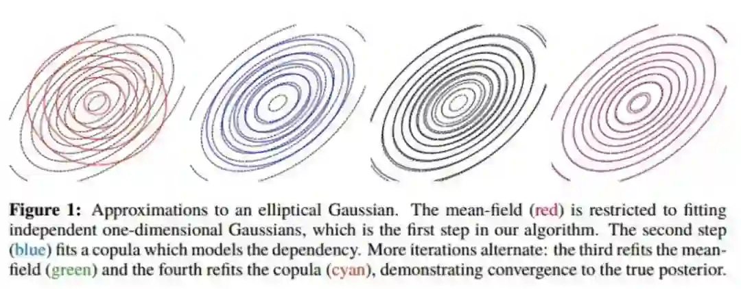 从上图中可以看出 Copula VI 比 MFVI 离真实后验分布更近,bias 更小。Copula 是统计学中的经典方法,对此感兴趣的读者可以去找相关资料进行学习。
