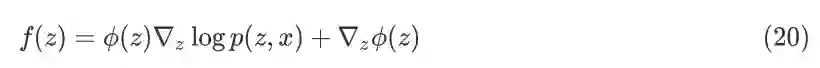 公式(19)中的右边一项包含了未知的真实后验分布 p(z|x) ,无法计算。如何构造一些合适的 f(z) 可以使得 Ep(z|x)[f(z)]=0 ,从而消除掉未知分布的影响。Stein 的方法给出了一类合适的 f(z) ,如下: