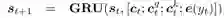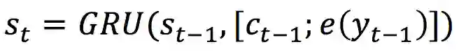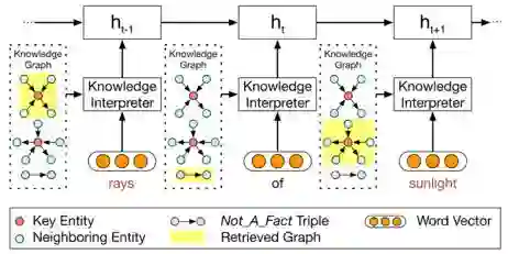 是指,将生成的词向量,以及这个词来自的三元组向量进行拼接(如果生成的是一个通用词,那么三元组就是Not_A_Fact)。在这里,可以看到GRU的输入多了两个向量 c_t^g(来自于表示图信息的向量)和 c_t^k(表示三元组信息的向量)。