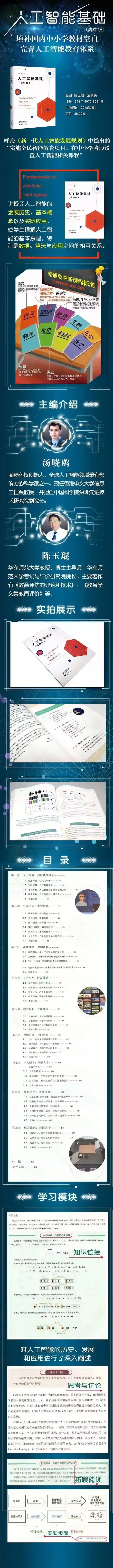 《人工智能基础(高中版)》教材由华东师范大学慕课中心、商汤科技、上海知名高中优秀教师共同编著。华东师大二附中、上海交通大学附中、清华大学附属中学、上海市市西中学等40所全国学校成为首批“人工智能教育实验基地校”。这是国内中等教育体系首次引入AI教材,人工智能教育在中国正式迈入基础教育阶段。由此人工智能这一当今最前沿的高新技术将走出“象牙塔”,成为每一个在校高中生都可以掌握的基本技能。