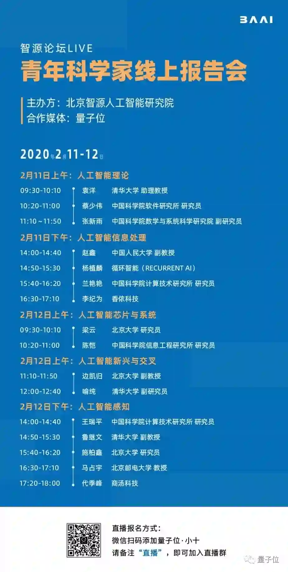 在关注疫情的同时,我们希望能为大家提供一些更好的学习机会。今天为大家推荐由北京智源人工智能研究院主办的“智源论坛Live|青年科学家线上报告会”。
