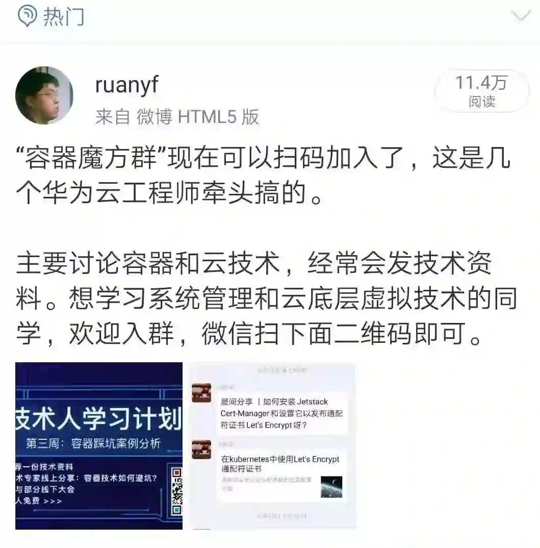 InfoQ 与华为云原生技术团队共同建立了【容器魔方】技术社群,每天在群内分享技术资料,有任何疑问都可以与群内开发者讨论。在这里我们既谈技术,也交个朋友。