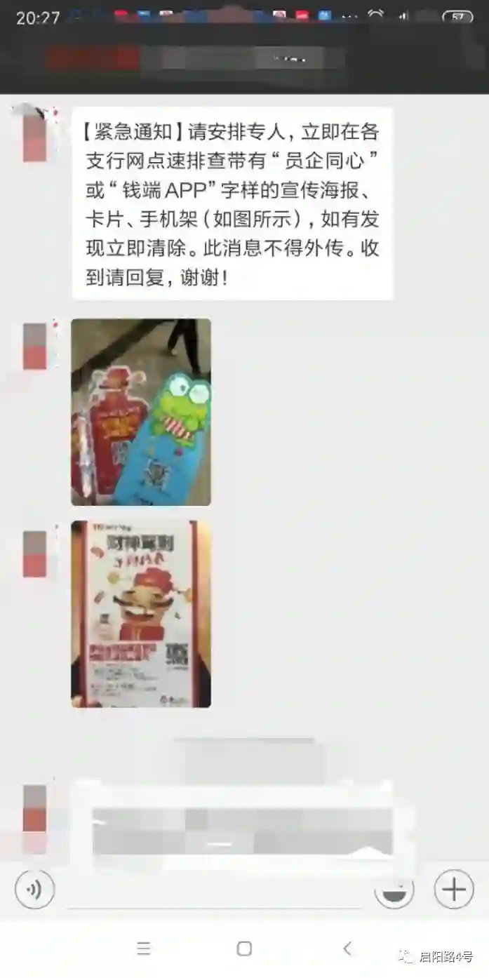 投资者提供的招行通知各网点清除“钱端APP”宣传内容的通知
