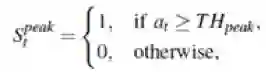 其中,S表示当前加速度计读数的状态,即是否为候选步子,如果为1,则表示当前时刻检测到候选步子。